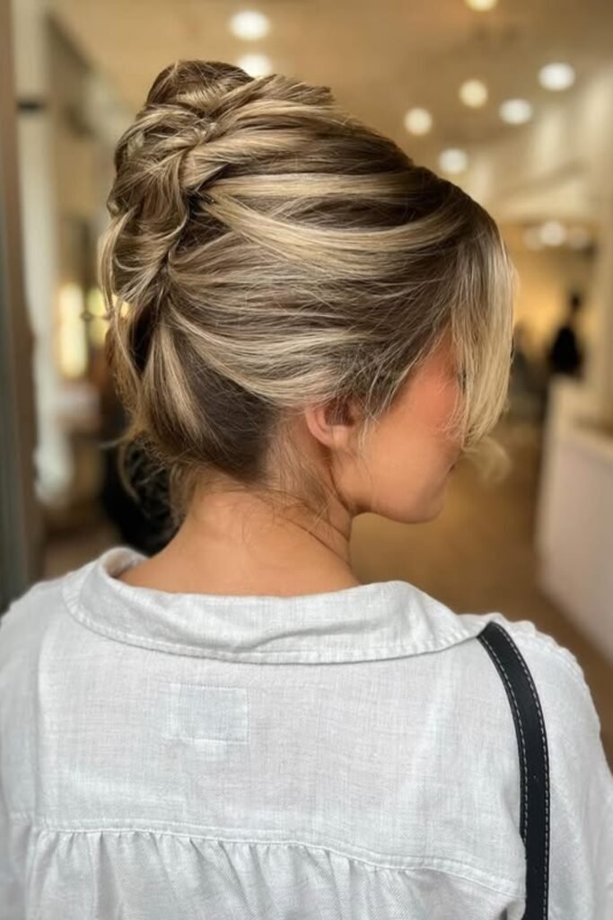 The twisted French updo gives you height, elegance, and that signature ‘90s sophistication all in one.