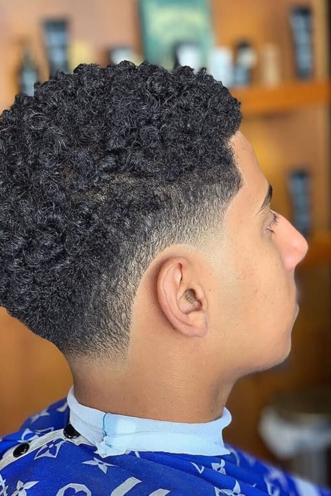 You can keep curls defined on top while fading the sides to create a clean, modern contrast.