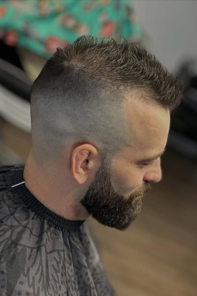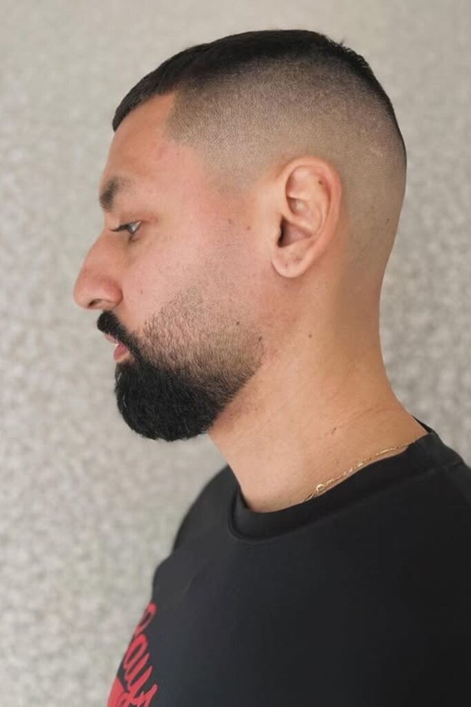 You’ll also find that the beard balances everything and stops the fade from looking too harsh. This cut works when you want contrast without going extreme.