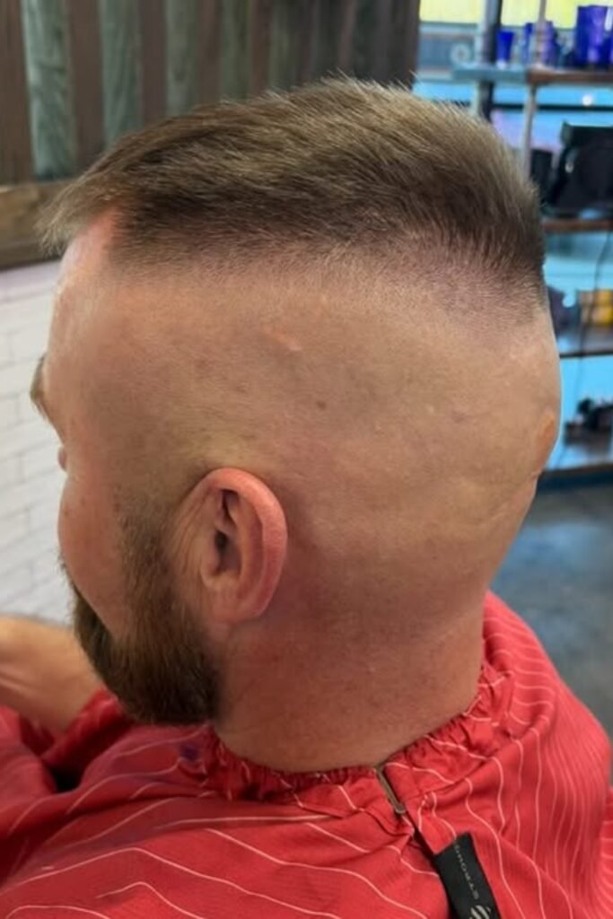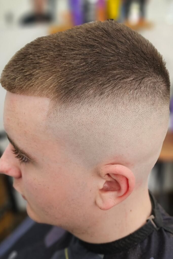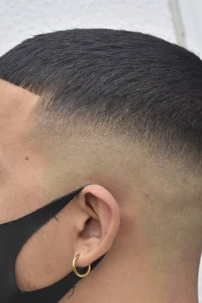 You can keep the buzzed top simple, while the low bald fade gives you a clean edge without going too high.