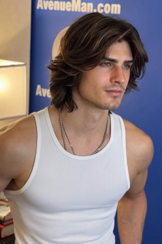 You can try a textured surfer cut that keeps medium long length around your crown and sides so your hair moves freely instead of sitting flat.