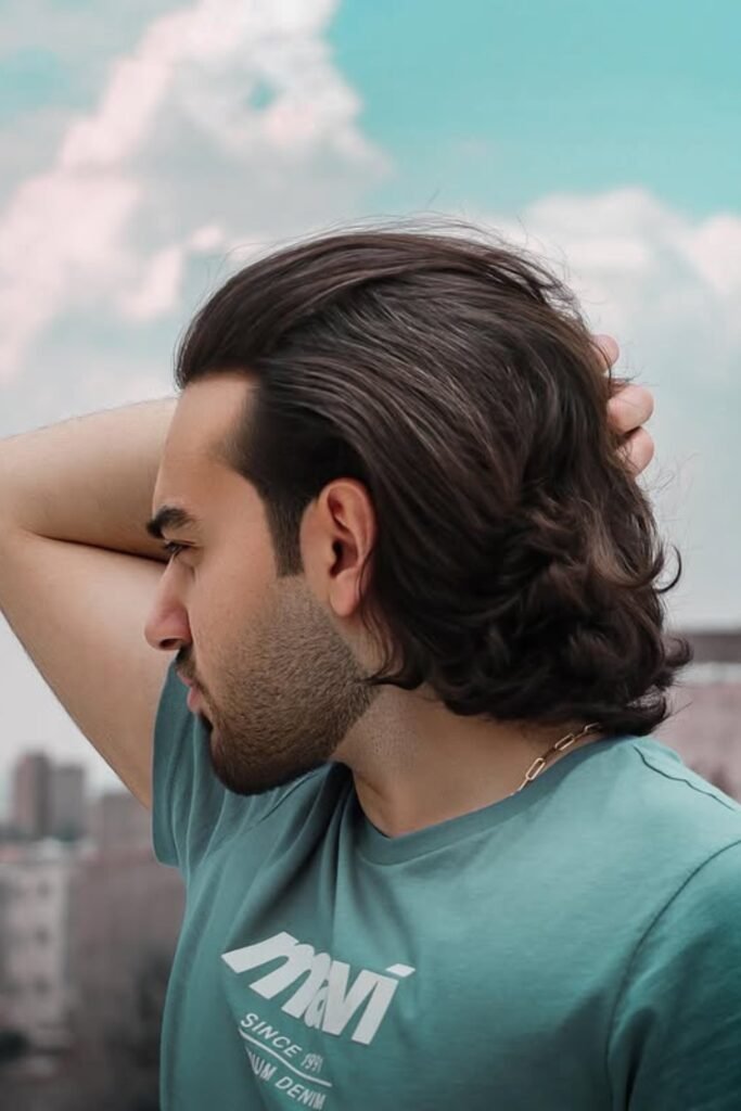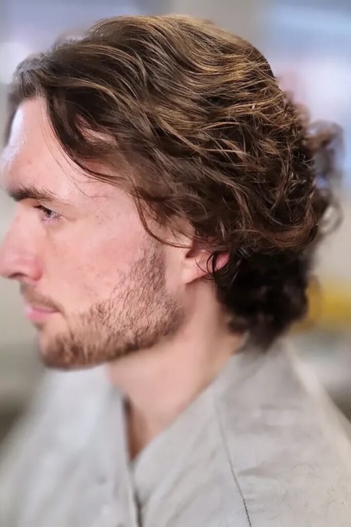 You’ll see this works really well if you have wavy or slightly thick hair because the side part adds shape without needing heavy styling.