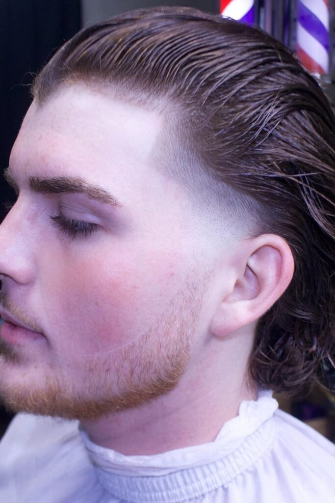 You can keep the sides natural while letting the top and back grow, which creates a smooth slick-back flow.