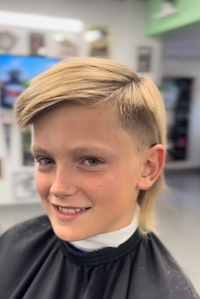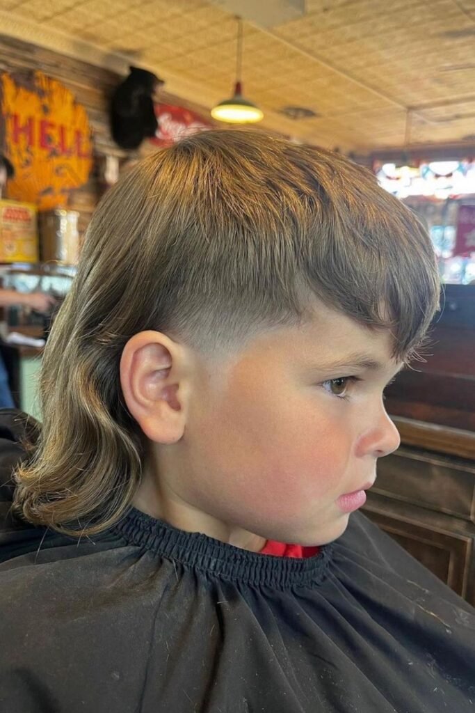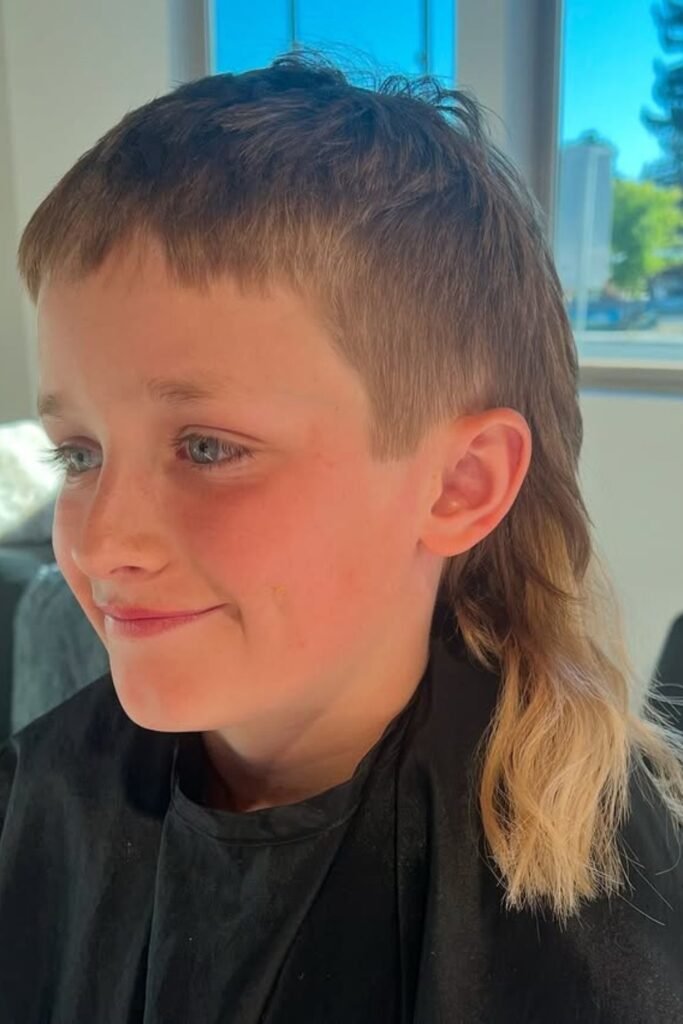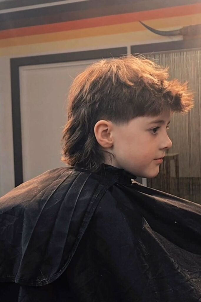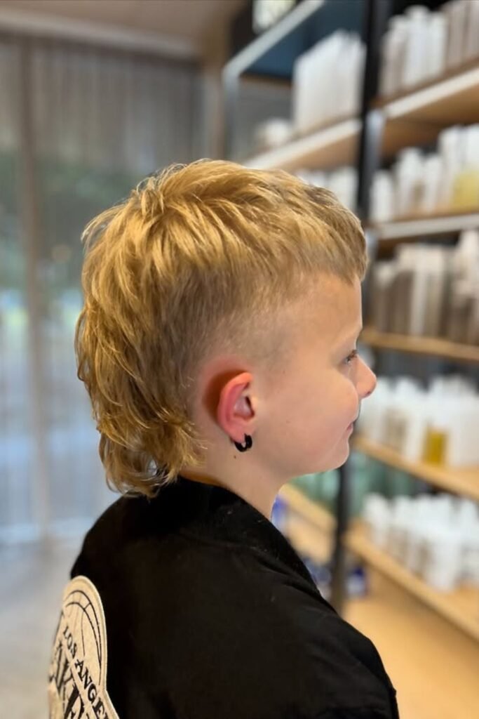 For younger boys, typically between ages 4 and 10, a softer and more subtle mullet is often preferred, with shorter sides and a slightly longer back to keep the look neat and playful.