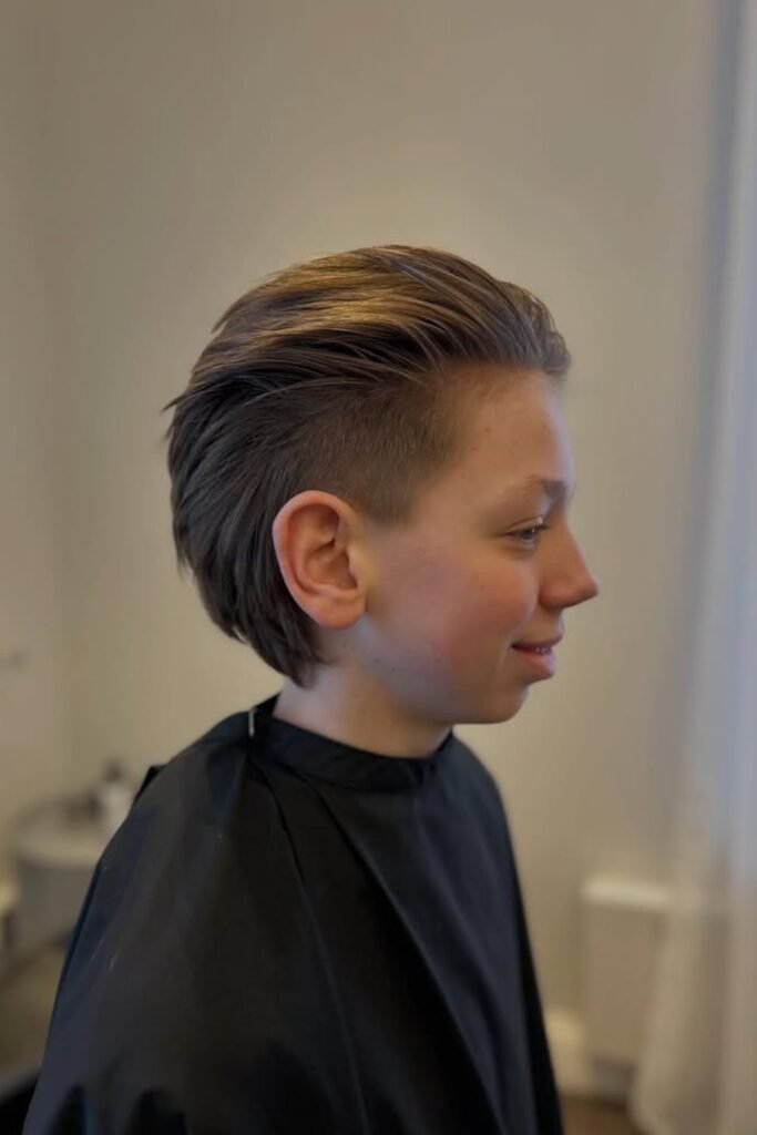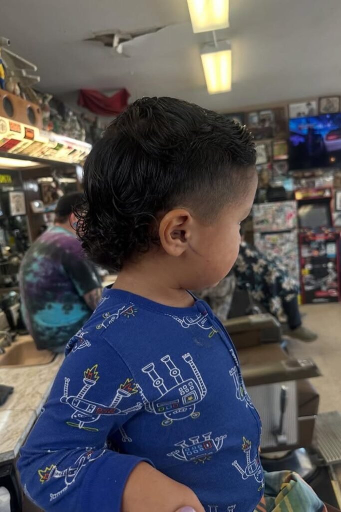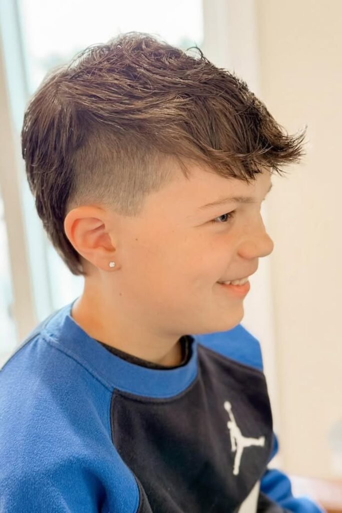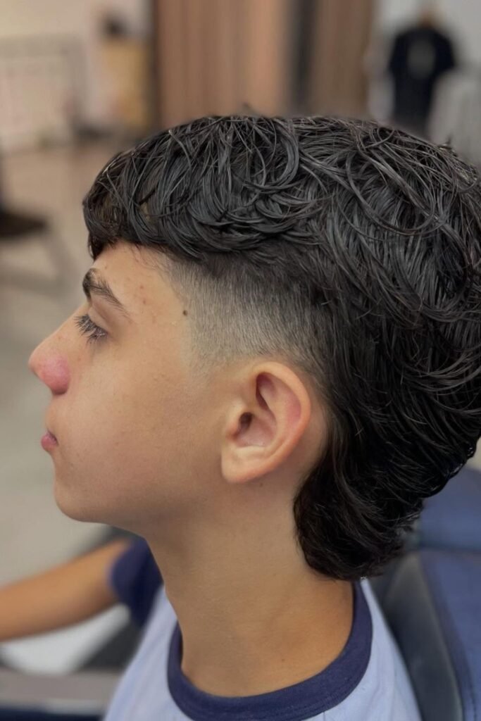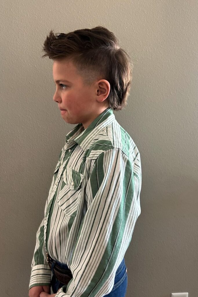 For younger boys, typically between ages 4 and 10, a softer and more subtle mullet is often preferred, with shorter sides and a slightly longer back to keep the look neat and playful.