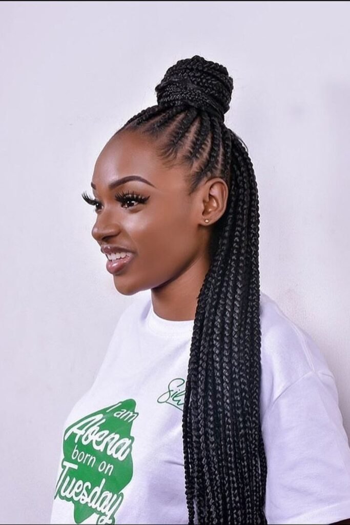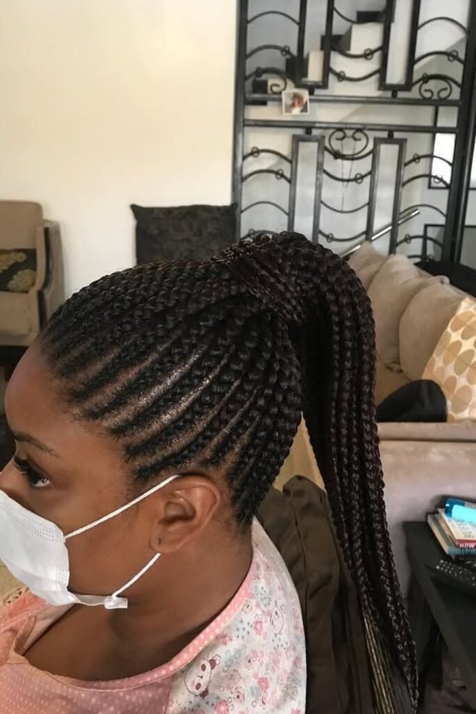You can witness that this style pulls straight-back cornrows into a sleek high ponytail, giving you both a protective and bold, youthful look.