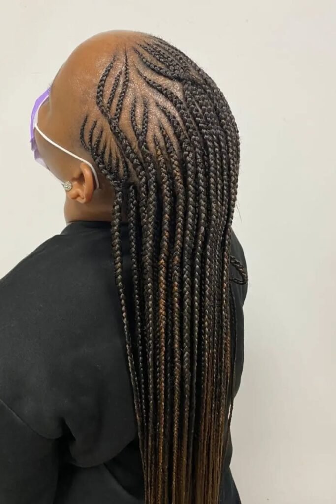 Because the cornrows curve to highlight your scalp design and flow into long, sleek braids, you will see how polished the whole style feels.