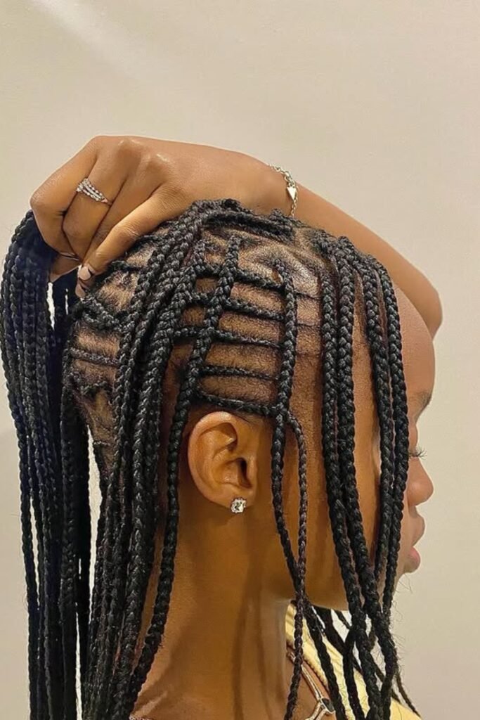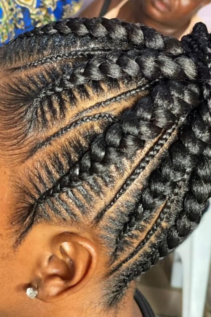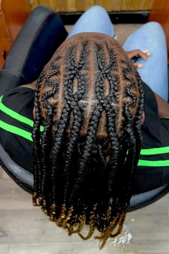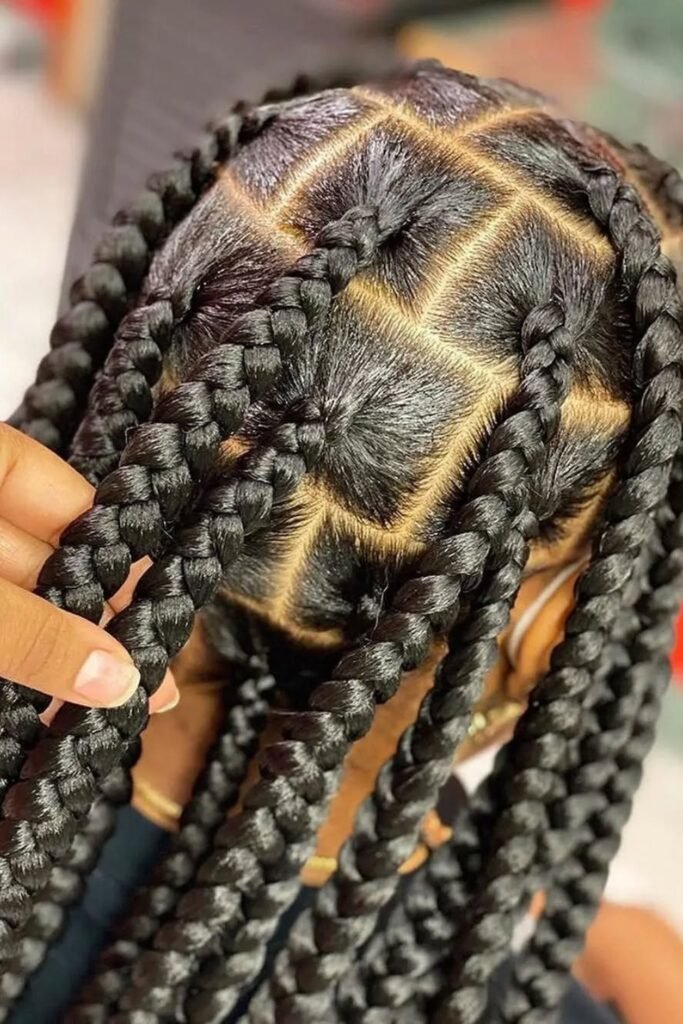 The jumbo cornrows with clean square parting will give you a bold, structured look that will really turn heads.