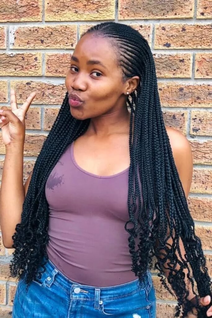 This style blends neat cornrow bases with loose, curly extensions for a soft, natural finish.