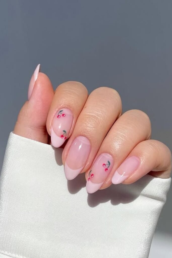 You can try soft pink French tips and make them stand out with little cherry accents on a few nails.