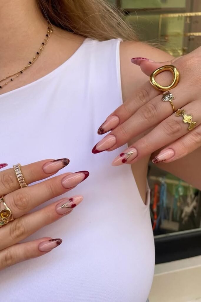 You can wear burgundy nails with a marble effect and a tiny cherry detail, and suddenly your manicure will feel chic without trying too hard.