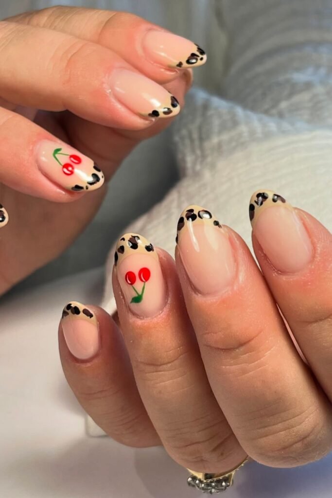You can wear these leopard tips with cherries and feel like your nails have both sass and sweetness at once.