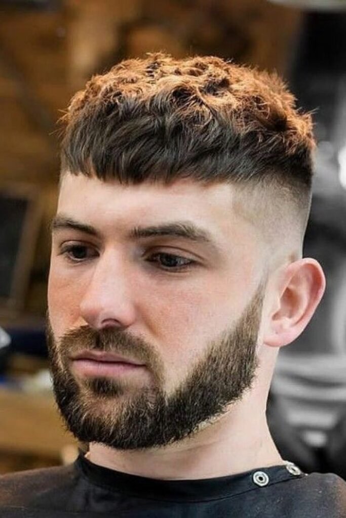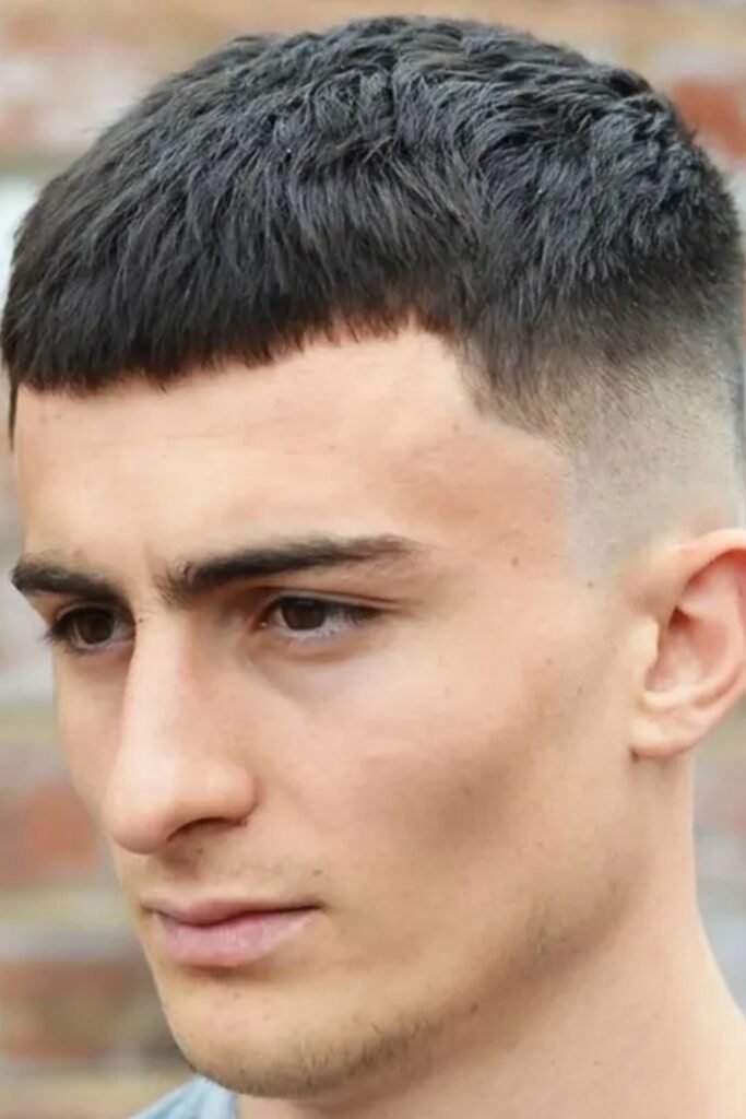 If you add a straight fringe, you’ll instantly notice how your crew cut frames your face differently.