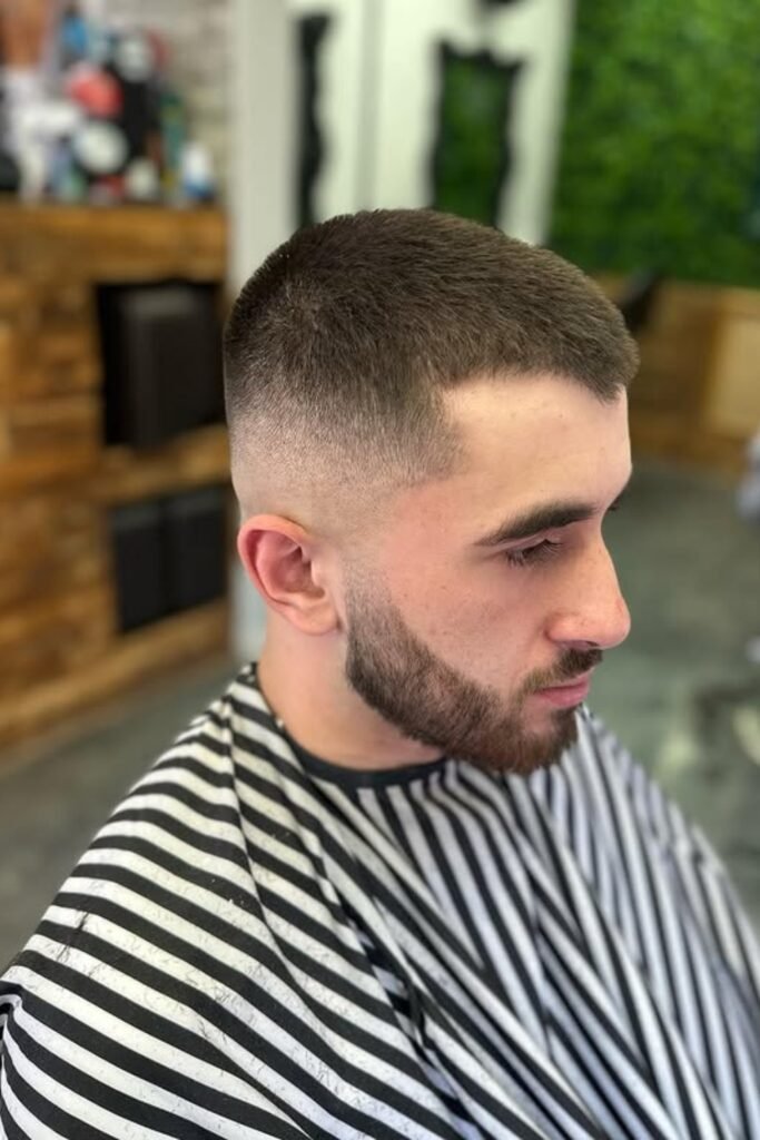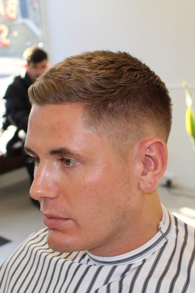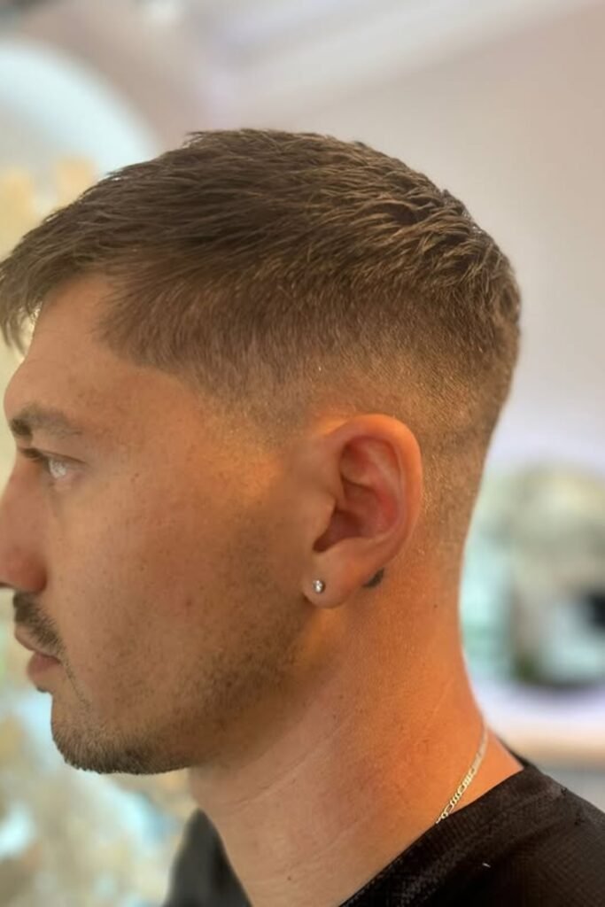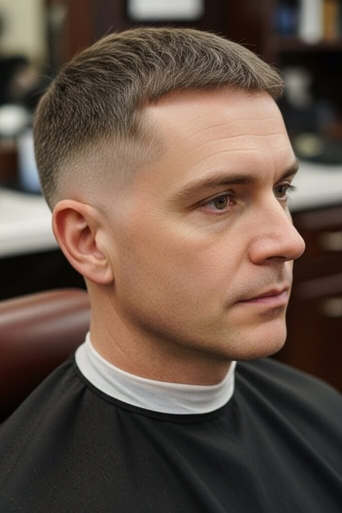 When you want a crew cut that feels effortless and grown-up, this one fits right in. The top stays short, but you keep enough fullness so your head doesn’t look flat.