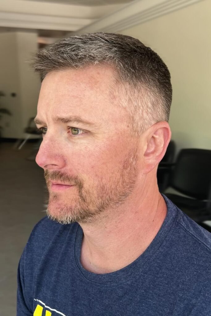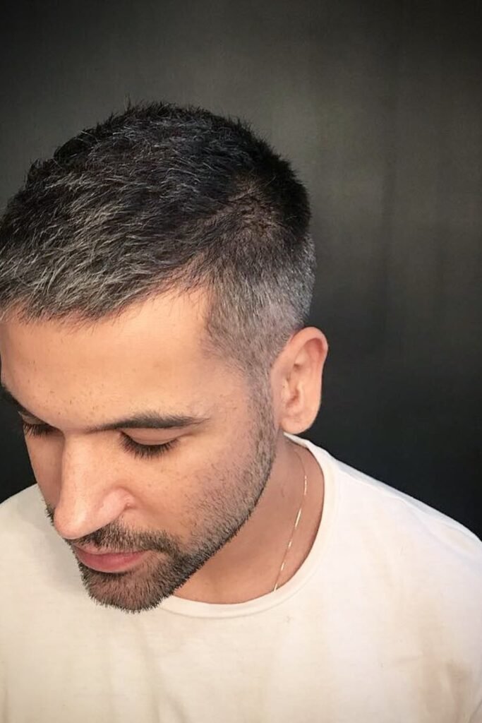 If your hair is grey, it changes how your crew cut looks, and this style uses that to your advantage.