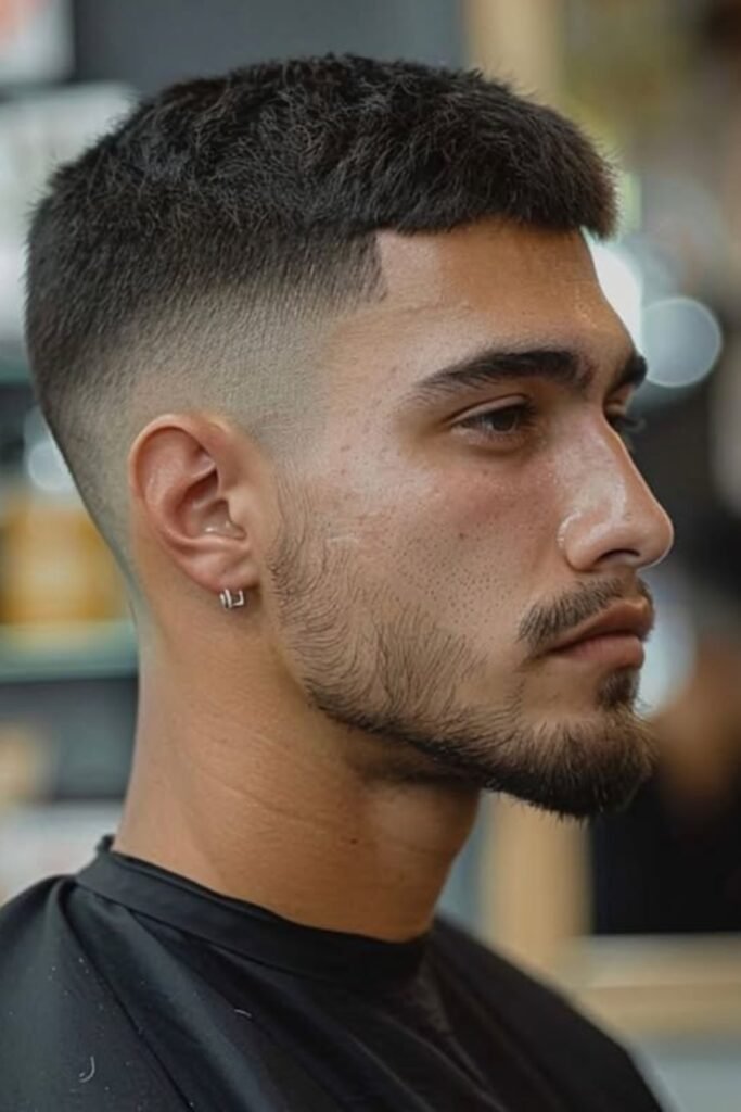 When you keep the fringe tight, your crew cut starts to feel sharper and more controlled without looking edgy.