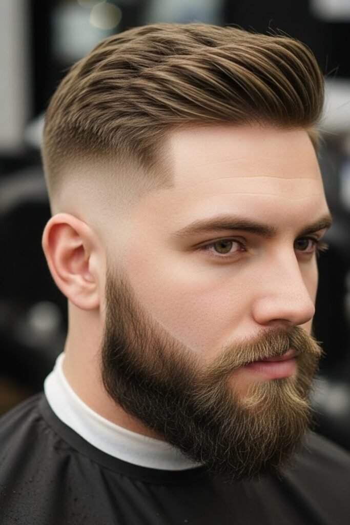 In this style, you taper the sides in a way that flows naturally into your beard instead of stopping suddenly.