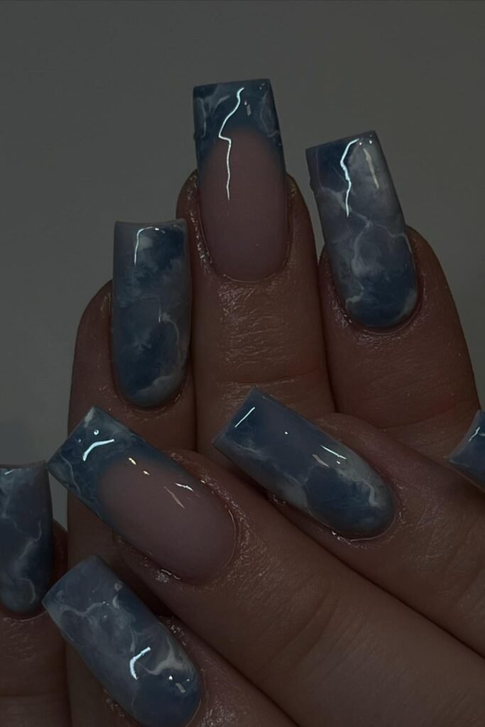 You get a marbled denim texture that adds depth, while the nude base keeps the design from feeling too heavy.