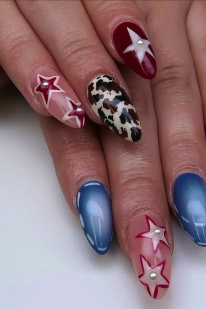You get a soft denim-blue base to keep things grounded, while bold stars and red accents bring in Western, cowgirl energy.