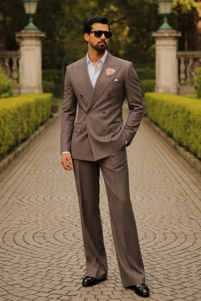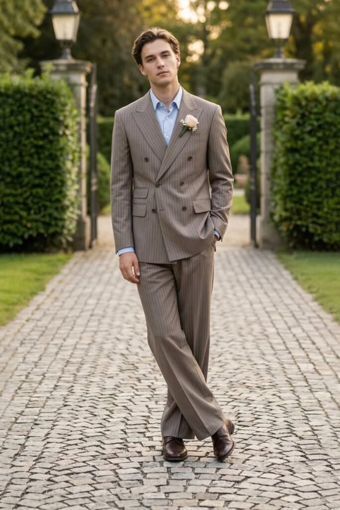 A brown pinstripe suit gives you sharpness without feeling strict like navy.