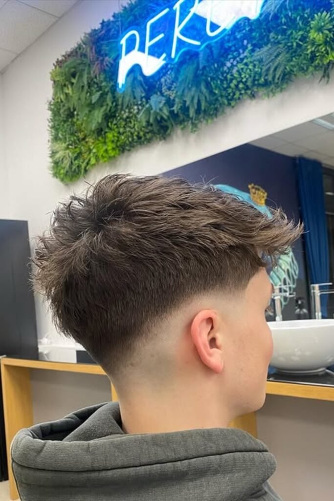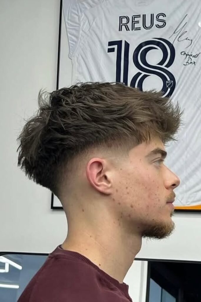 If you like a natural, lived-in top but still want sharp sides, you can ask for a low drop fade with a textured cut on top that doesn’t need heavy styling.