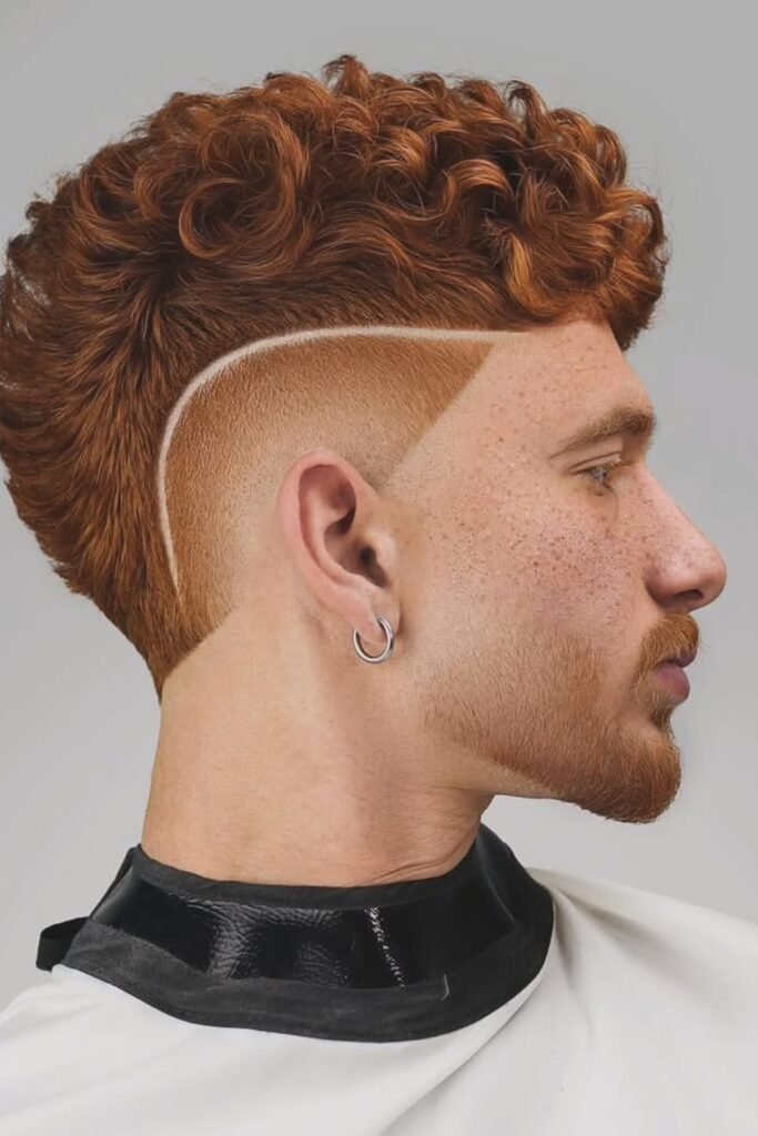 You keep everything clean around the temples and ears with a fade, while the curly mohawk through the center adds texture and character.