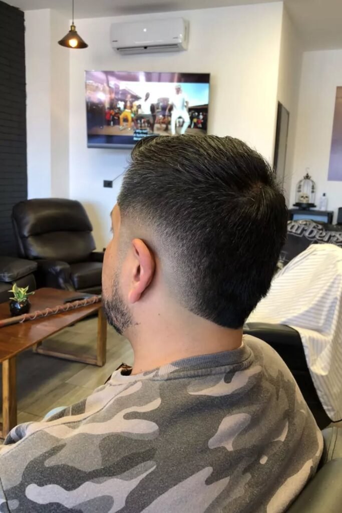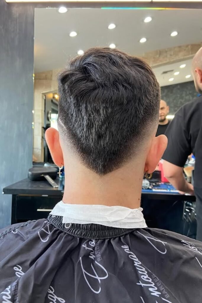 You shape the fade into a clean V at the nape, giving the haircut structure instead of a blunt finish. It works well if you want something sharp and modern that still feels controlled.