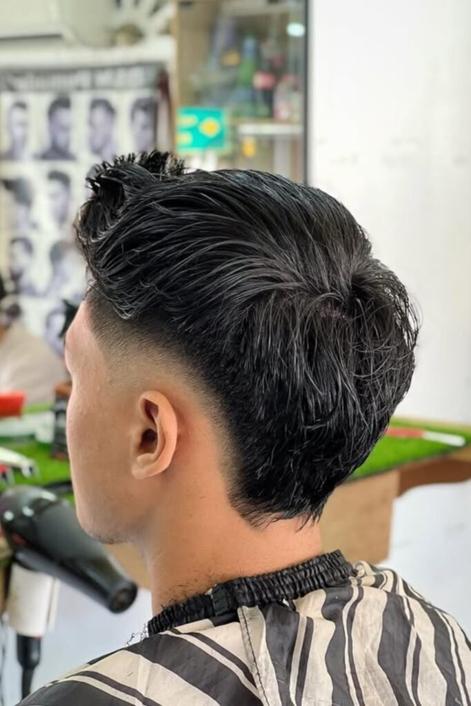 You get clean sides from the fade, but you still keep texture on the top and back, so your hair looks a little messy in a good, natural way.