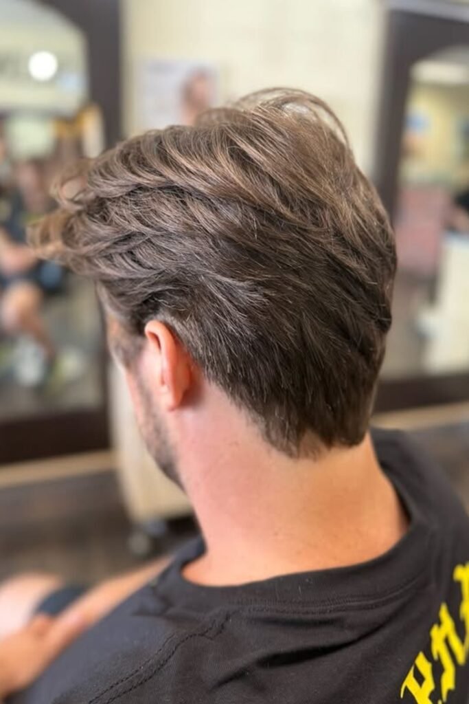 This works well if you want the flow look but you don’t want to commit to long hair or a long grow-out phase.