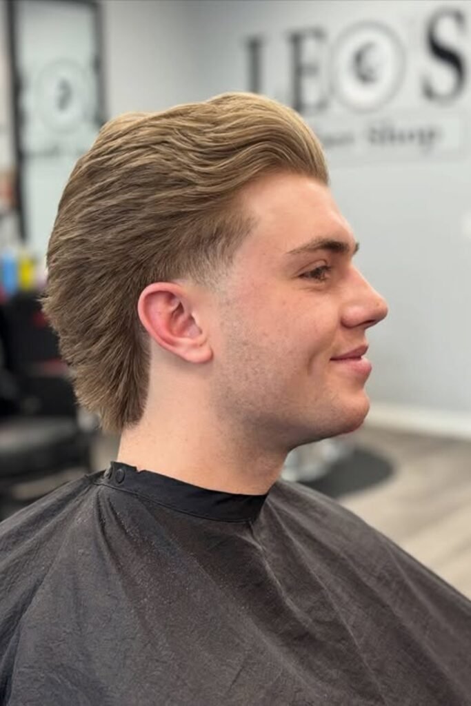 You might hear it called the hockey haircut, and you’ll notice it has longer hair on top and at the back, so you can let it sweep away from your face and flow naturally with your hair’s texture.
