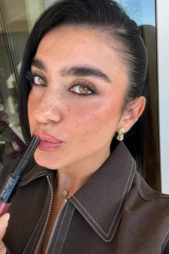 You will see this shade works well for everyday looks because it blends easily with warm bronzer and soft brown eyeshadow, giving your lips a polished finish.