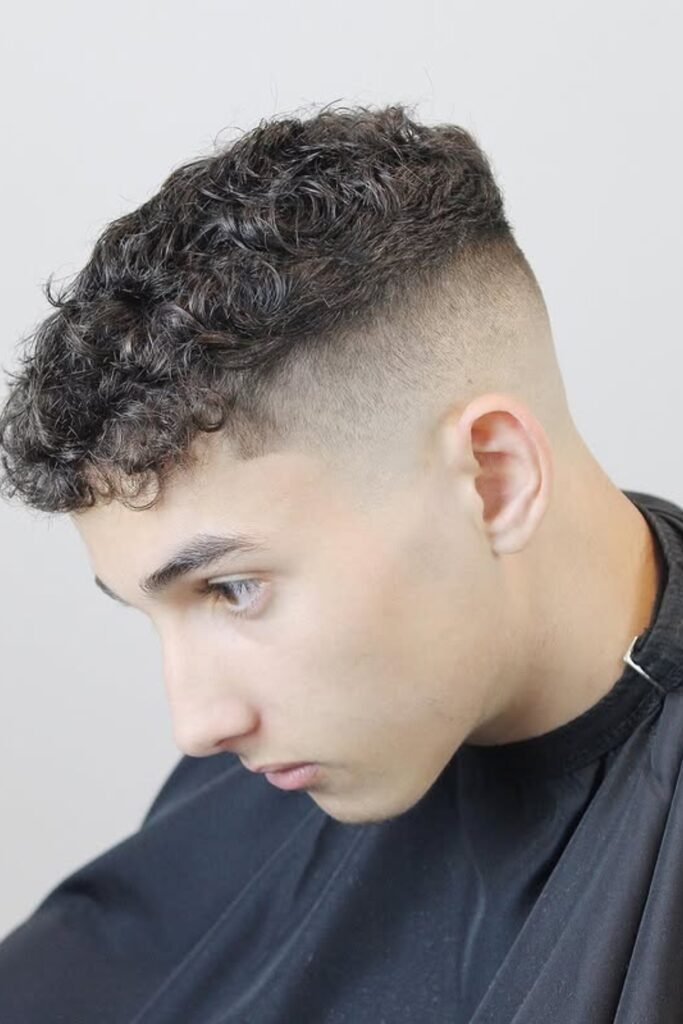You can ask for a high fade that blends cleanly into the top and leave enough length for curl definition.