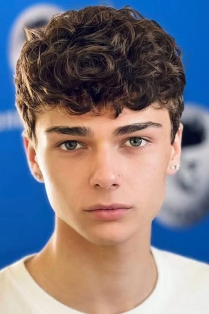 You can ask your barber for a low fade that blends softly and keep the top medium length so the curls can sit forward naturally.