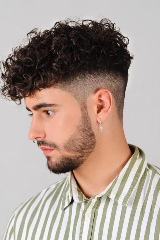 You might choose this if your curls flatten easily or lose shape during the day. You should ask for a low to mid fade with length left on top for volume.