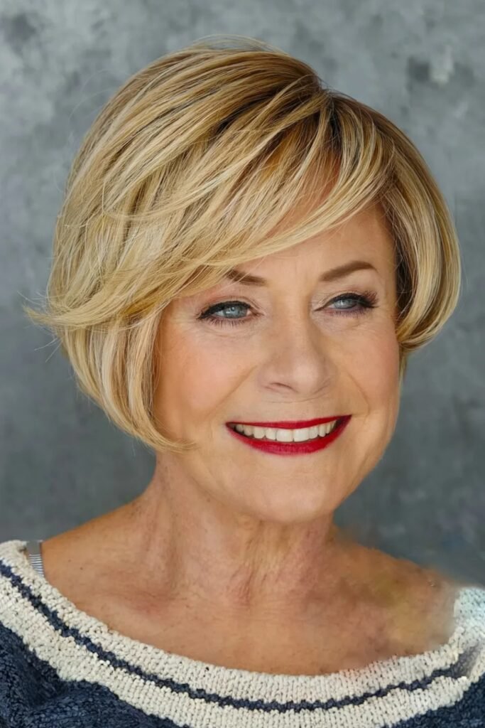 This cut is easy to maintain, flattering for mature features, and perfect for everyday wear, offering a fresh, youthful look that stays light, airy, and effortlessly stylish today.