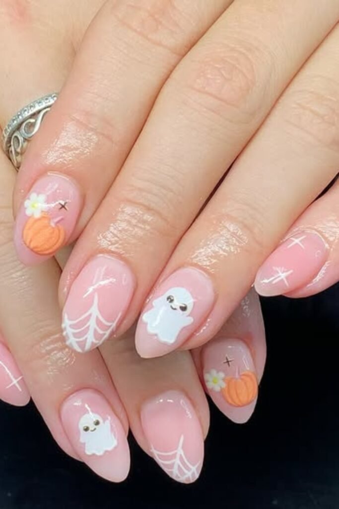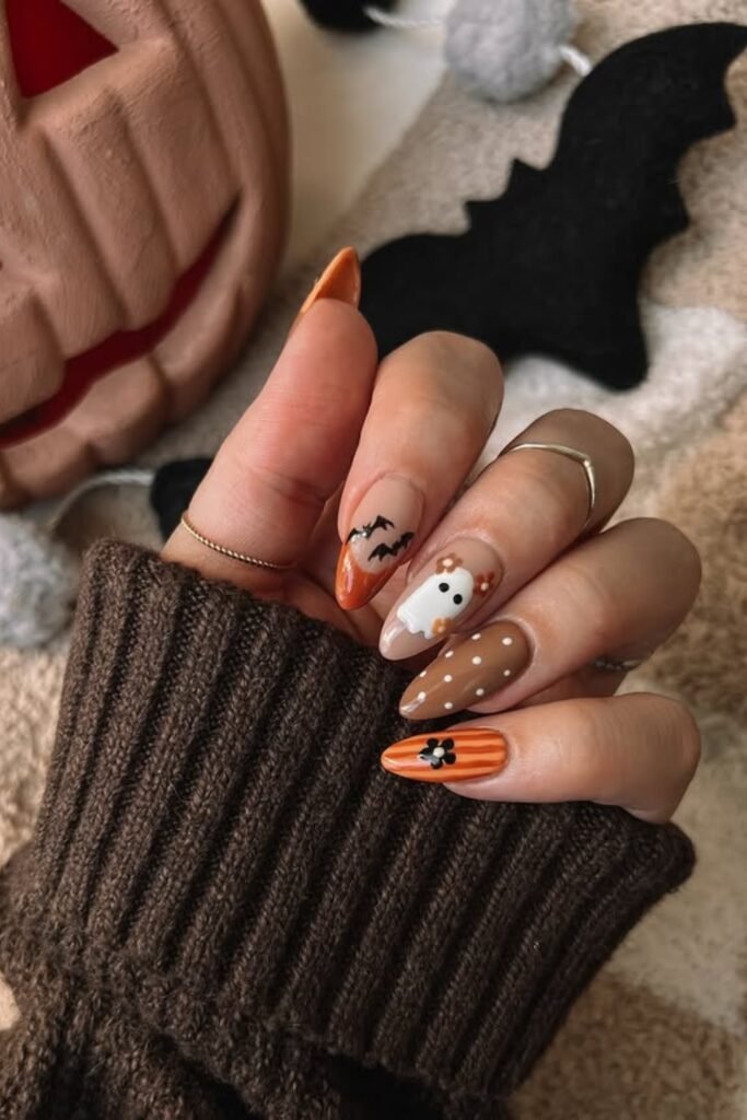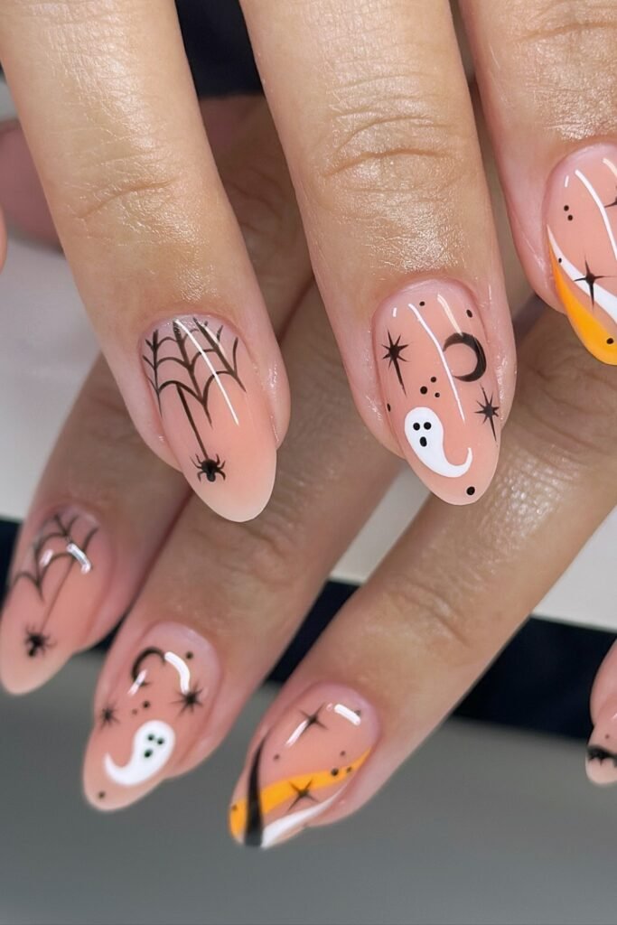 You might elevate your seasonal style by mixing playful ghosts and spiders with a classy nude base.