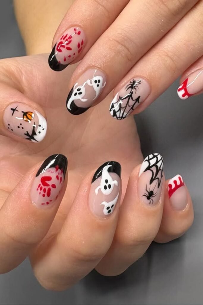 You will see chrome spiderwebs, glow-in-the-dark ghosts, and dark red blood-drip designs everywhere.
