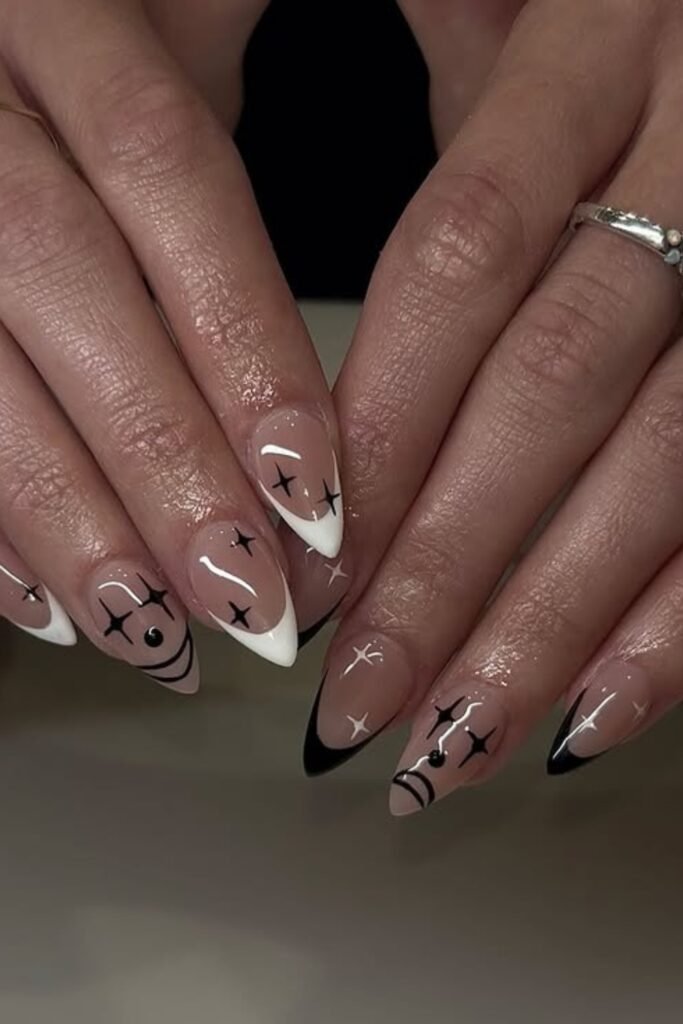 Adding stars and a cat silhouette makes your nails playful, elegant, and perfect for any occasion.