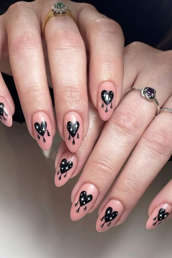 You get bold black hearts, and you turn them into something intentional by pulling the bottom into soft drips instead of leaving them flat.