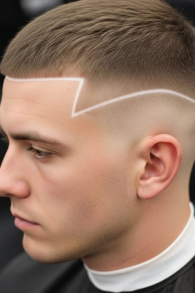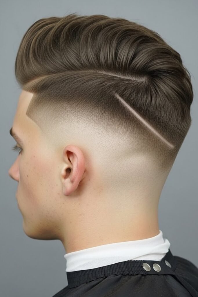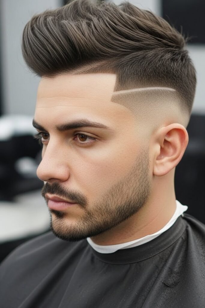 A high fade with a hard part is all about structure. The fade is kept high and clean, while the part line adds definition to your top.