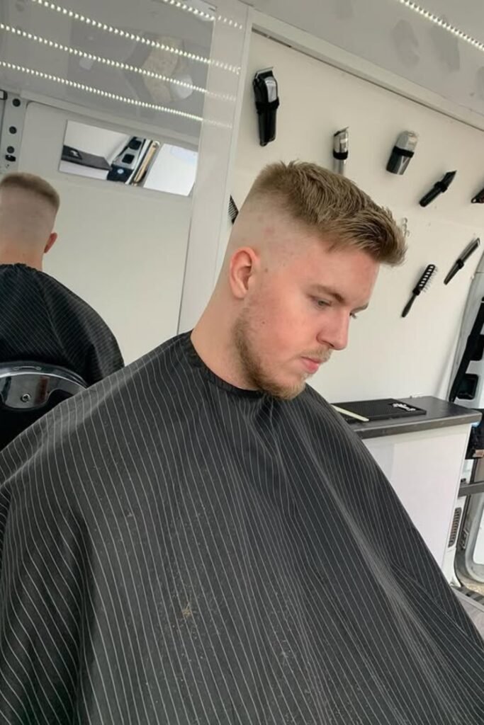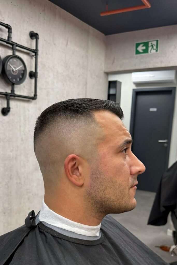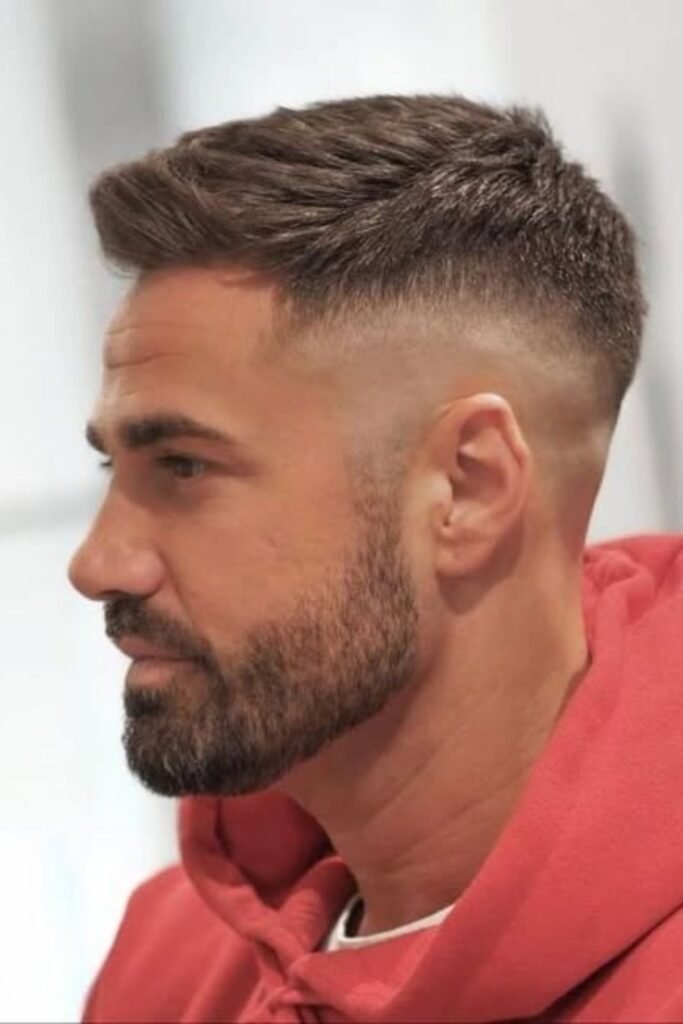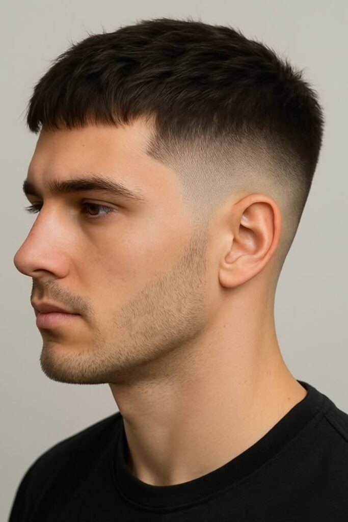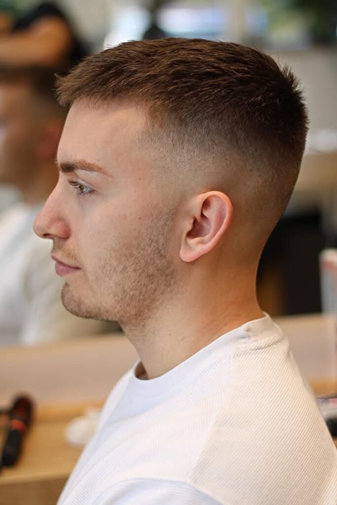 For low maintenance and clean results, a crew cut with a high fade is hard to beat. The top stays short and even, while your sides are faded high for a fresh finish.