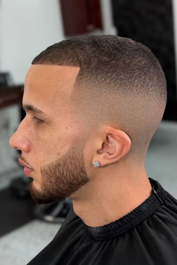 You can ask your barber to blend the fade directly into your beard line and keep the top short with texture.
