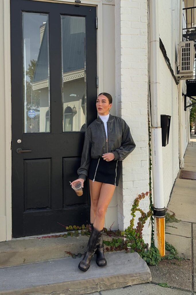 In the fall, you can try riding boots or moto boots with cozy sweater dresses because they are easy to look put-together.