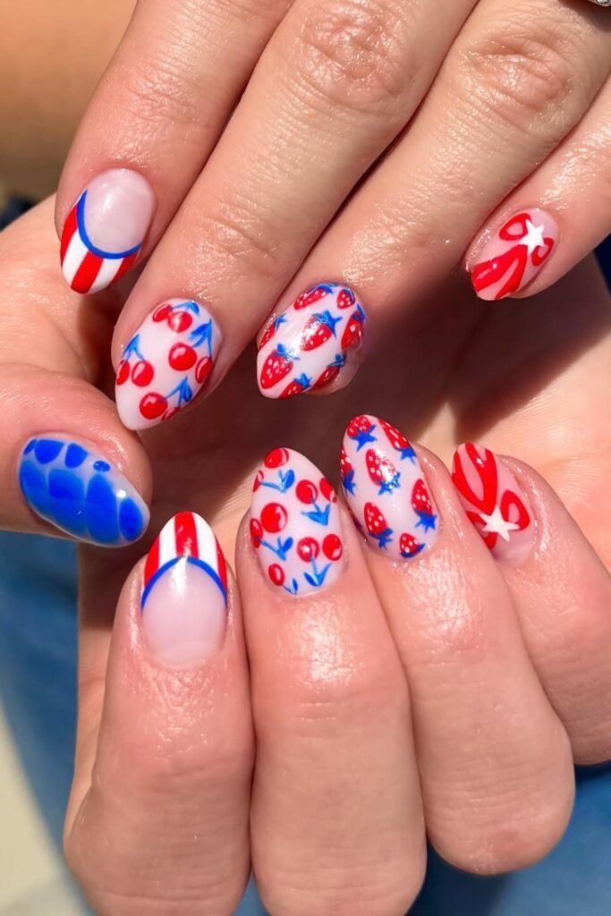 If you want nails that feel bright and playful, this cherry-and-strawberry mix nails that vibe perfectly.