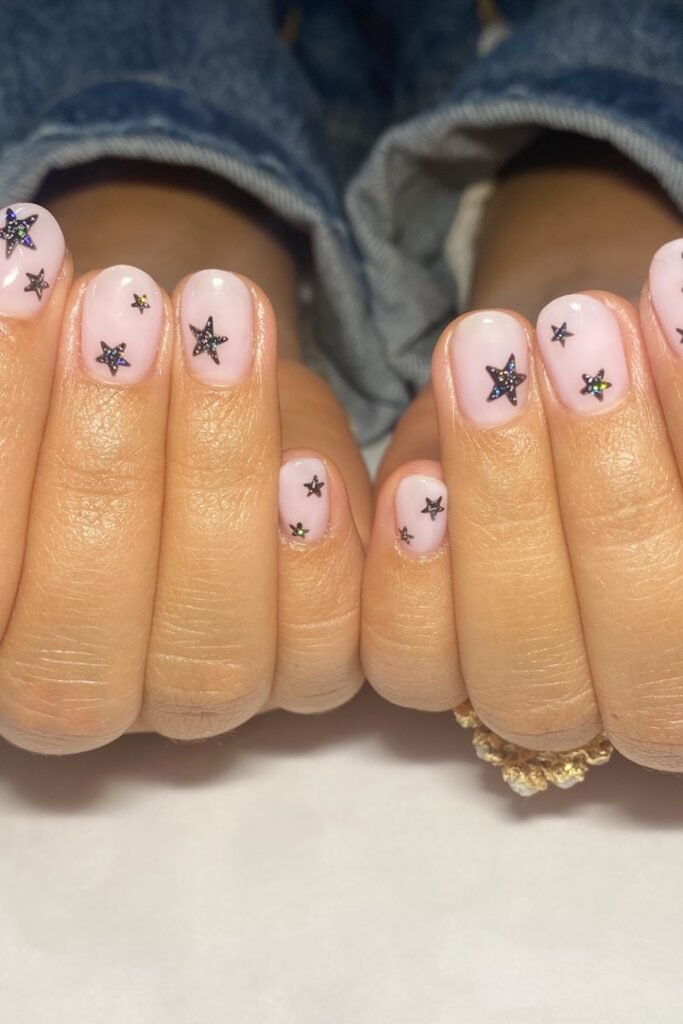 If you want something cute but low-maintenance, these tiny scattered stars are the easiest way to dress up short nails.