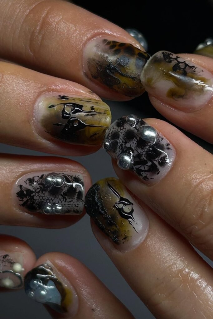 If you like nails that feel more moody than sweet, this smoky black-and-brown set nails that vibe perfectly.