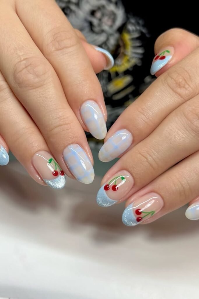 If you add a checkered accent nail, you tie the whole theme together without making the set feel heavy.