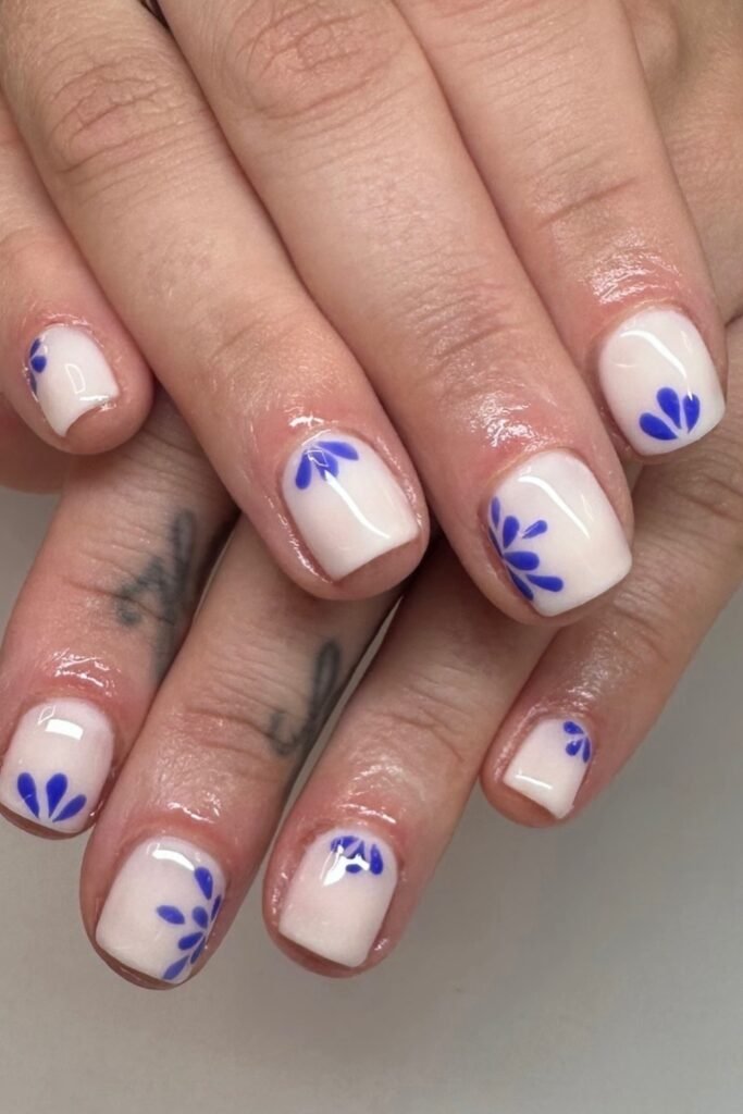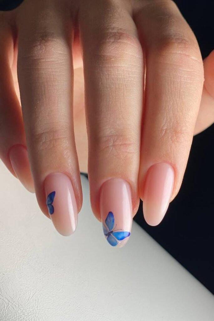 A soft nude base paired with a single blue butterfly feels effortless in June, especially if you love minimal nails with a little personality.