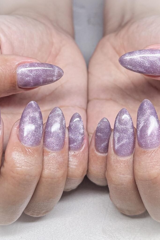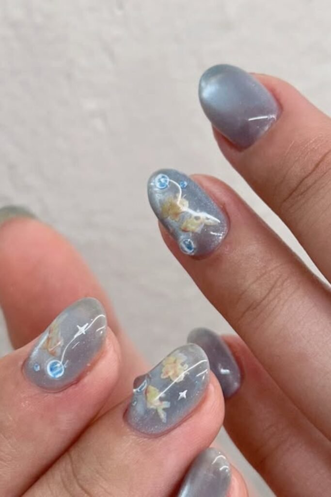 When you want nails that feel dreamy without going over the top, a soft silver aura does the trick.