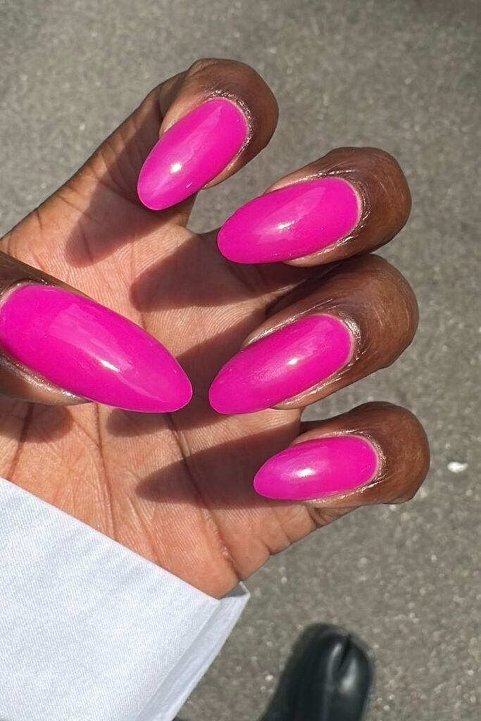 A high-shine hot pink always owns June, especially when you want something bold without any extra design work.